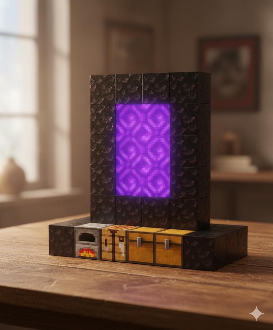 Zbuduj swój świat z gry! Realistyczne klocki do odtworzenia portalu, skrzynek i pieca. Rozwijają kreatywność i zdolności manualne. Idealne dla fanów budowania!